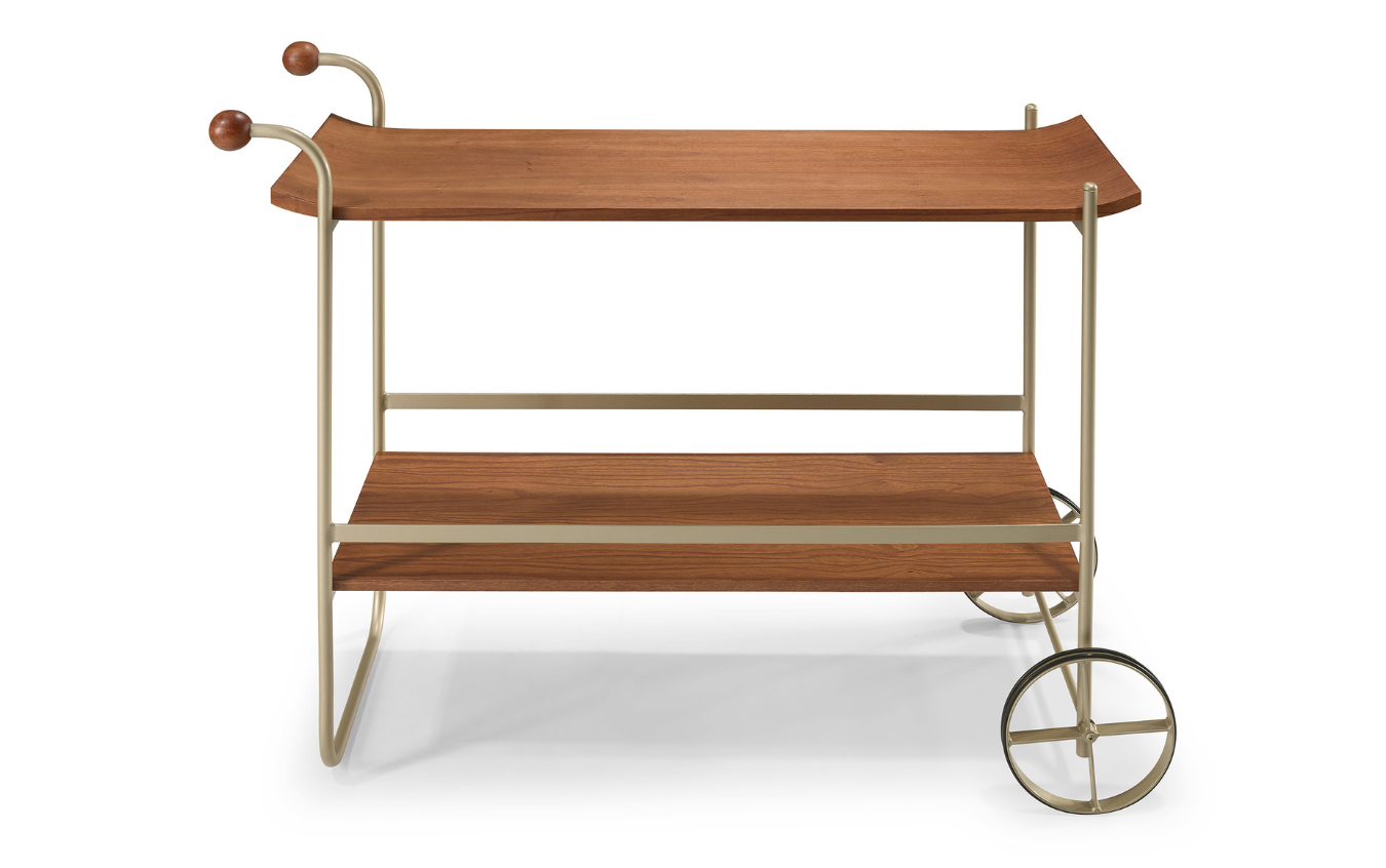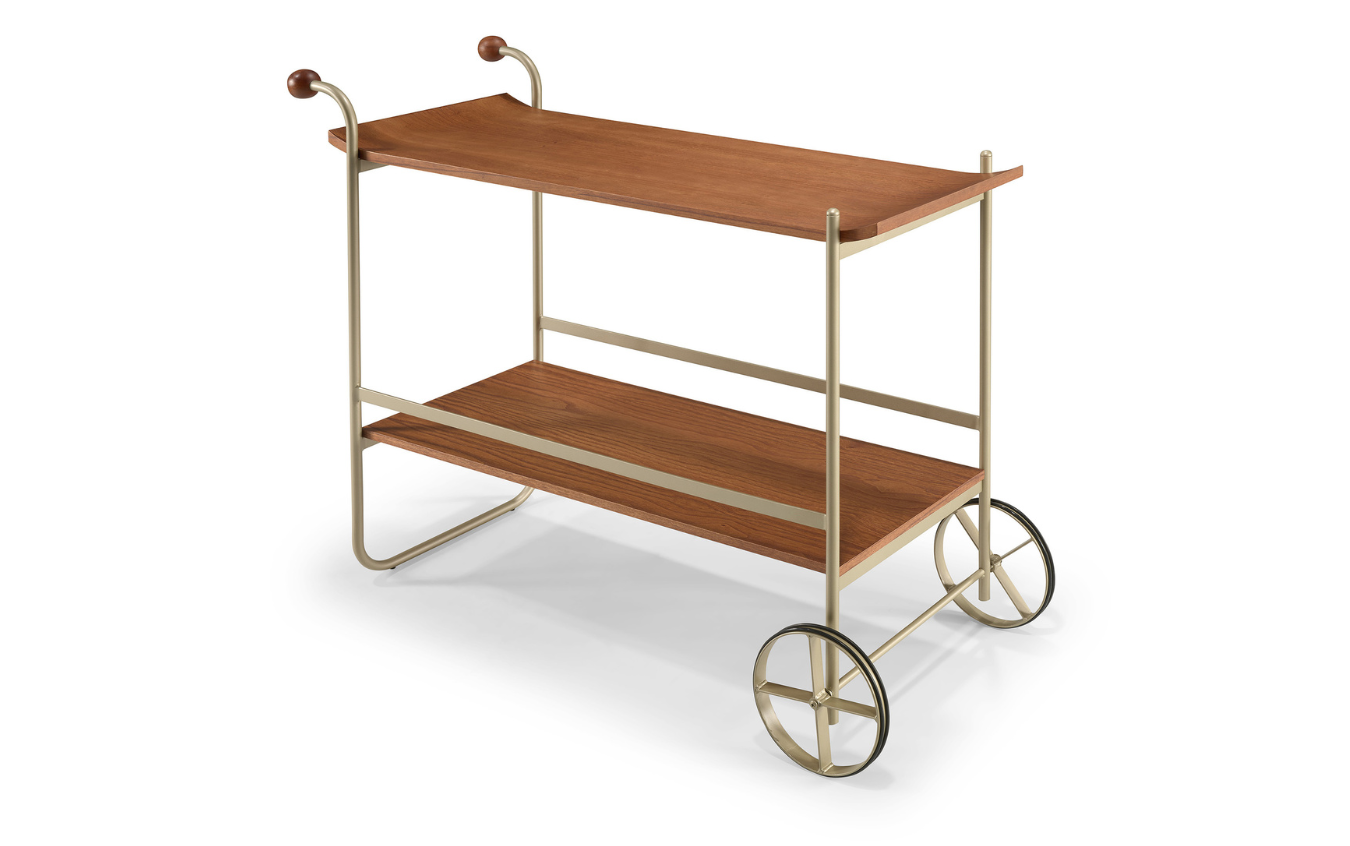 Sua estrutura é complementada pela roda frontal em madeira, garantindo mobilidade e design ao móvel. Ideal para servir como aparador ou mesa lateral, o Carrinho Unique é a solução perfeita para ambientes modernos e sofisticados.